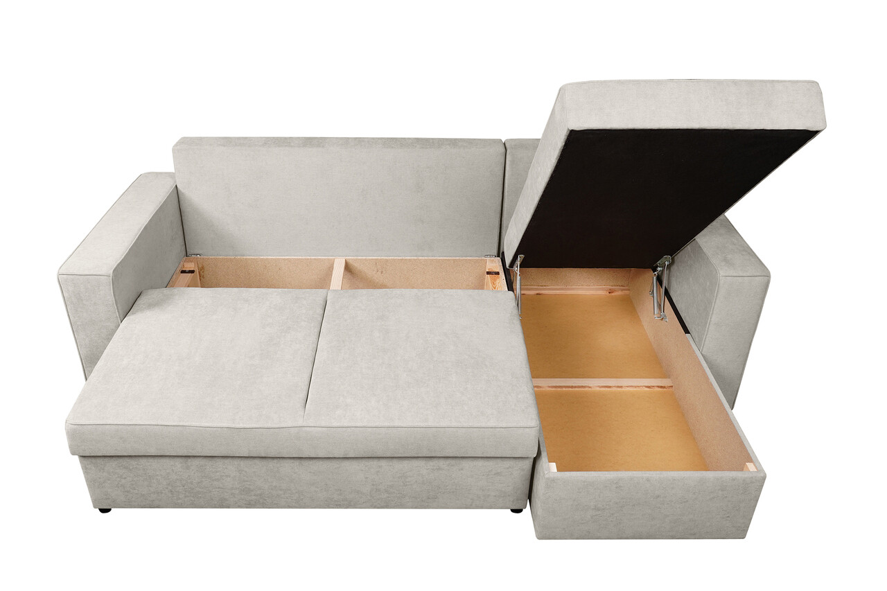 Designul său modern, completat de o nuanță elegantă, conferă încăperii un aer rafinat și contemporan. Sistemul de extindere, ingenios și ușor de utilizat, devine soluția perfectă pentru a adăuga un loc de dormit suplimentar, în timp ce lada de depozitare inteligent concepută oferă suficient spațiu pentru păstrarea accesoriilor de dormit, păstrând ordinea și funcționalitatea în același timp.