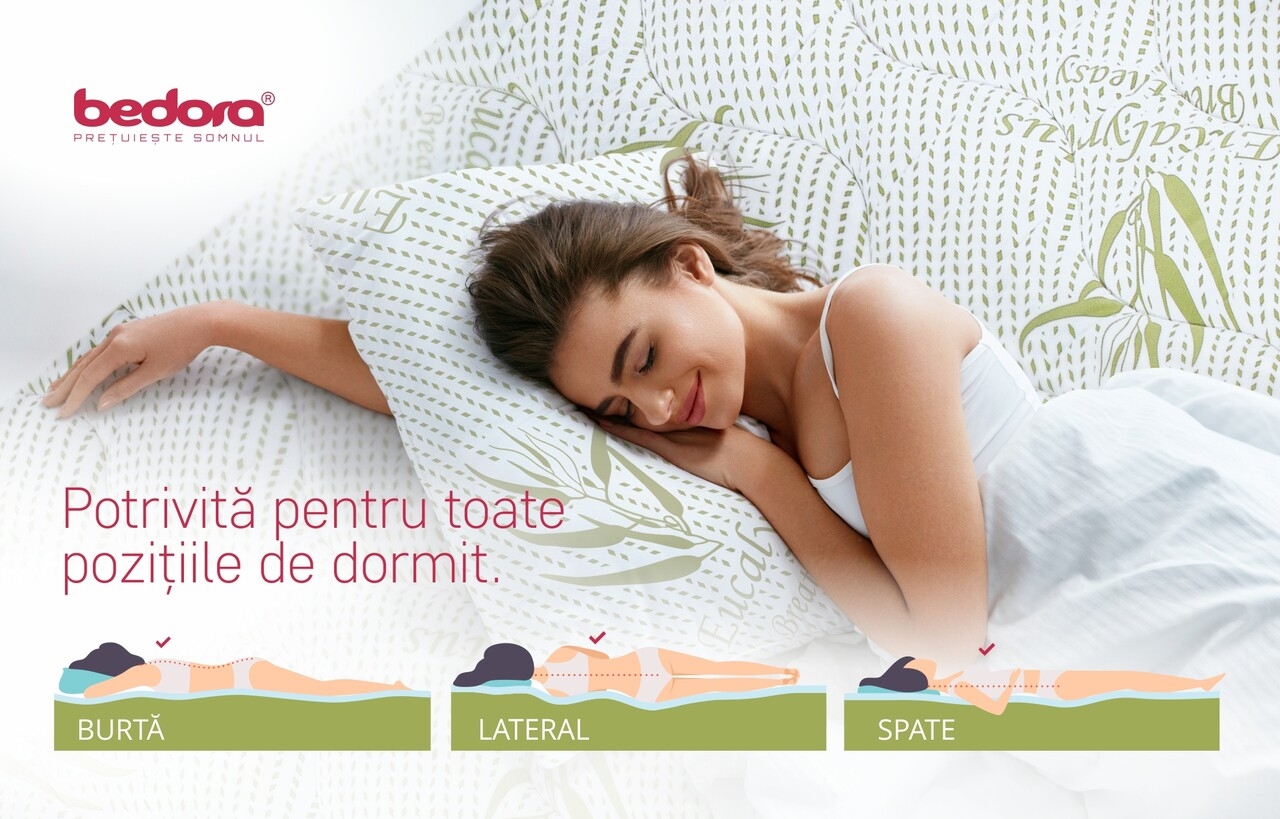 - Indicata pentru toate pozitiile de dormit: pe spate, pe lateral si pe stomac