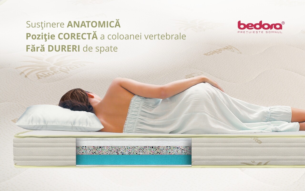 Asigura sustinerea anatomica a corpului si o pozitie corecta si sanatoasa a coloanei in timpul somnului.