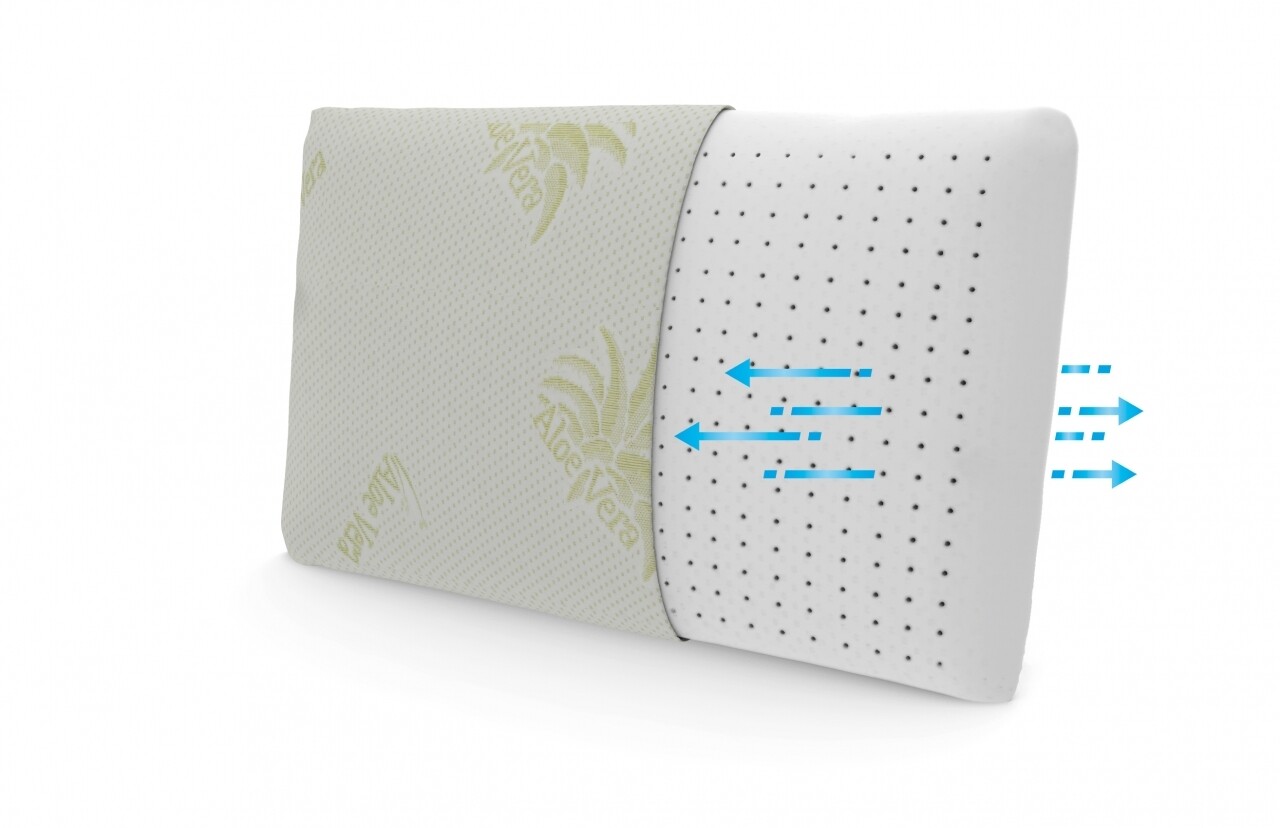 Creata cu materiale de calitate superioara, perna Aloe Vera Memory Latex ofera o sustinere excelenta a capului si a gatului datorita spumei Green Therm Memory Latex® care se muleaza pe cap, gat si umeri pentru o pozitie naturala a corpului.