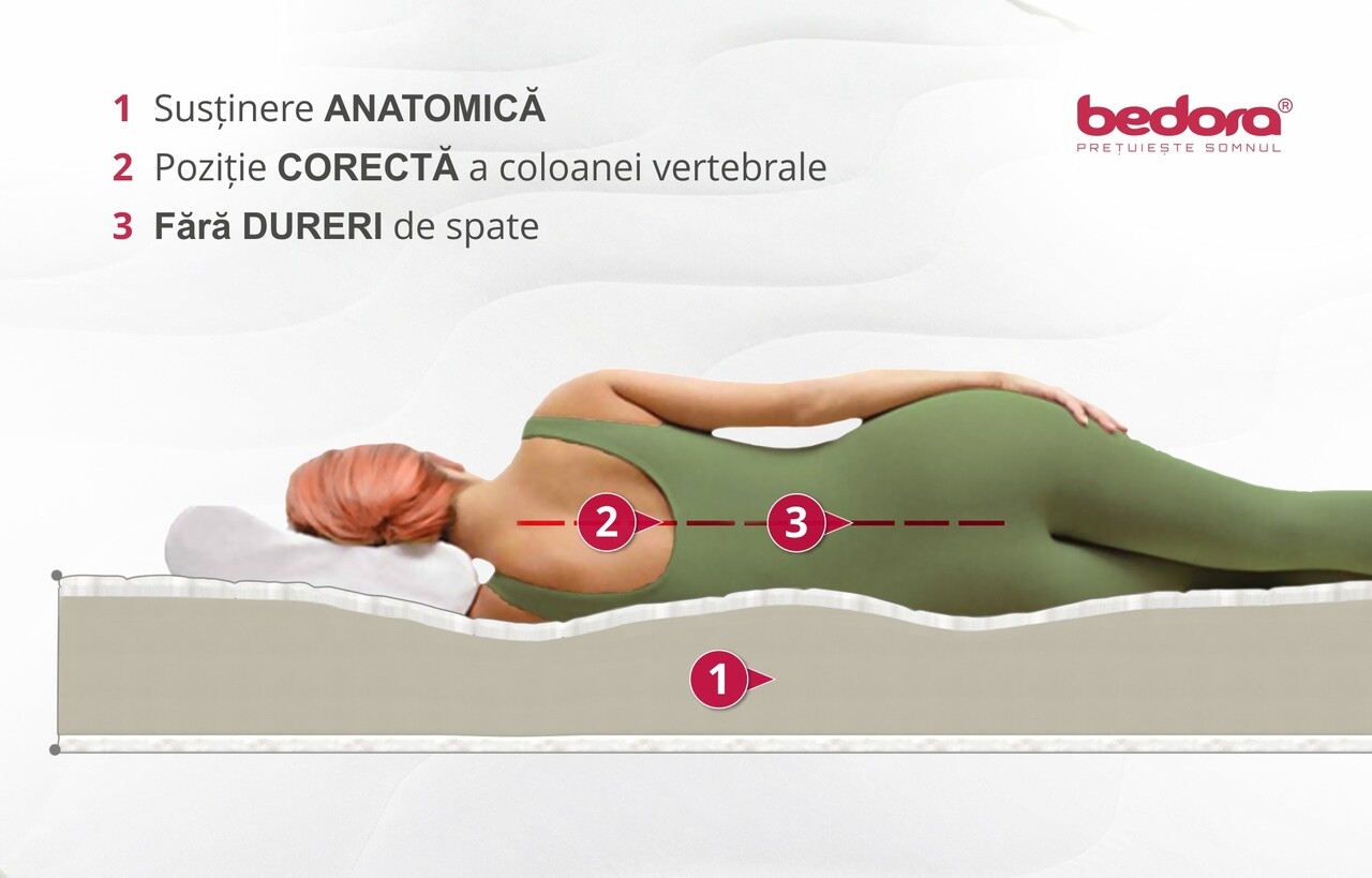 Straturile sale atent concepute creează un echilibru perfect între un suport ferm și un confort deosebit, reducând presiunea asupra mușchilor, oaselor și ligamentelor. Aceste caracteristici sunt esențiale pentru un somn revitalizant și sănătos.