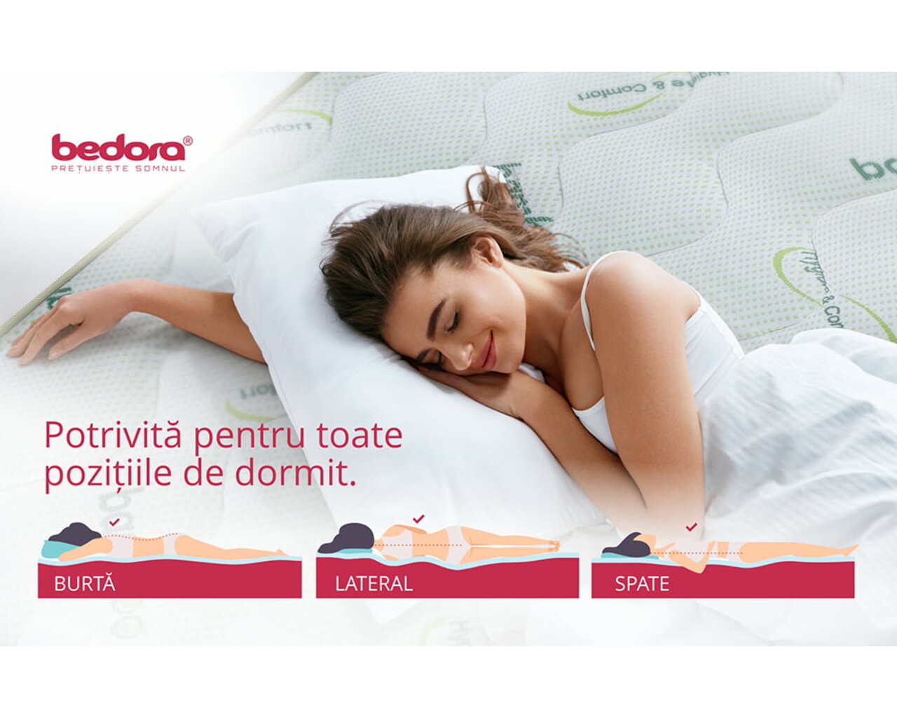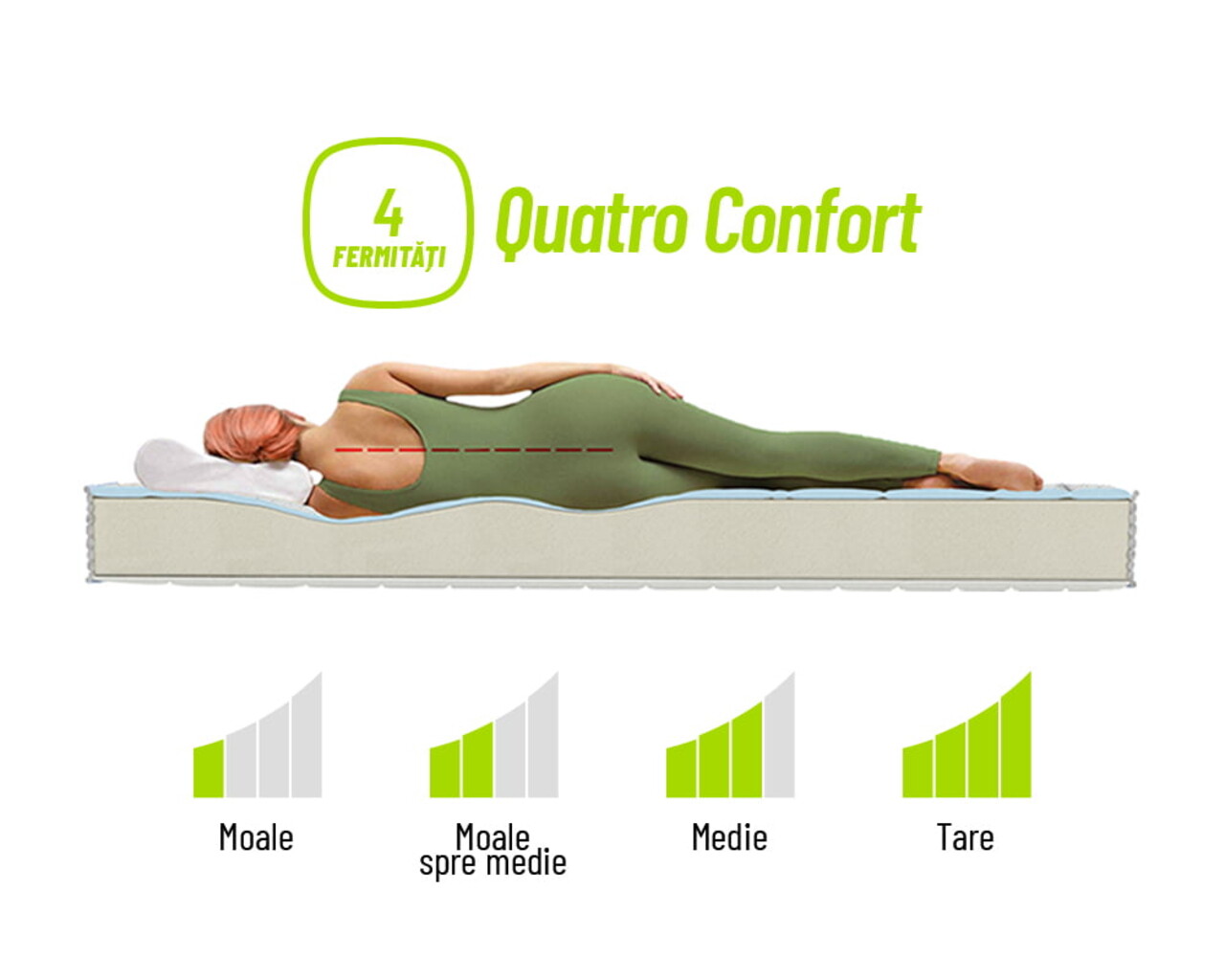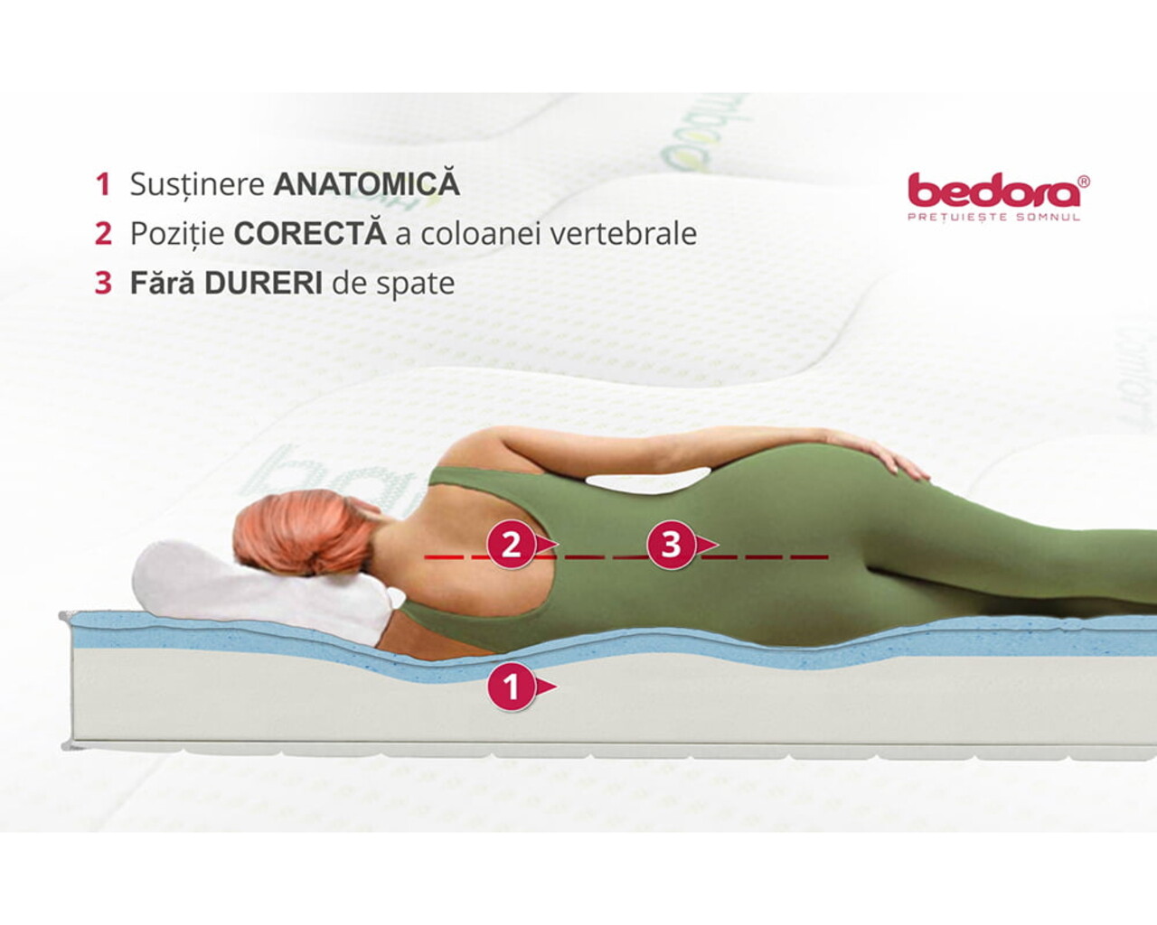 Stratul suplimentar de 3 cm din spuma Green Therm Memory cu particule Arctic Gel® aplicat bazei impreuna cu cel din husa superioara se muleaza pe corp eliminand punctele de presiune in timpul somnului pentru a relaxa muschii si a asigura o circulatie sangvina sanatoasa.