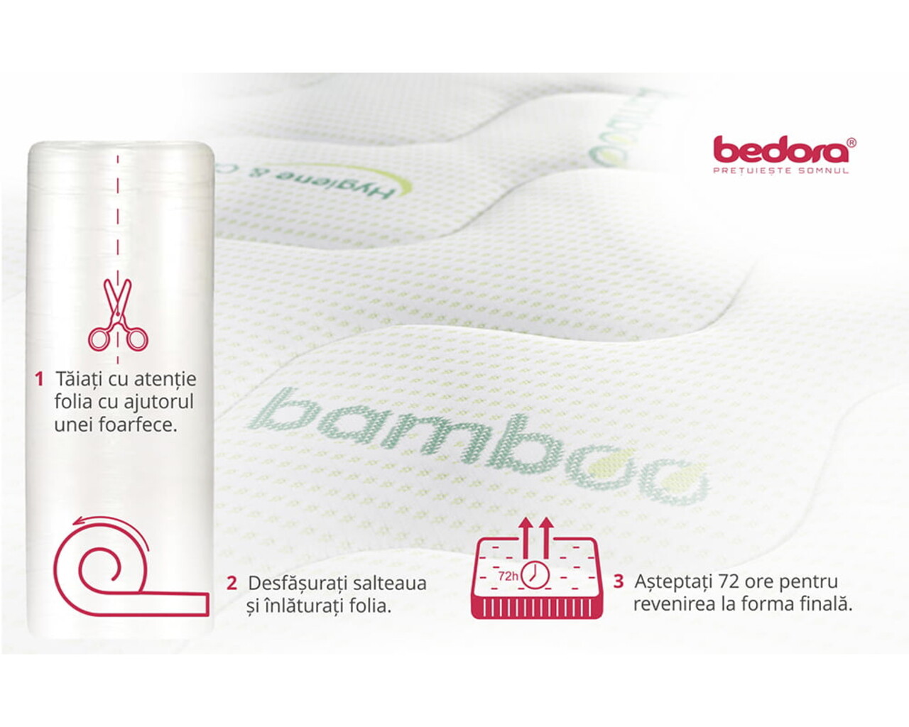 Pentru produsele infasurate in rulou, recomandam deschiderea/derularea imediat dupa achizitionare.