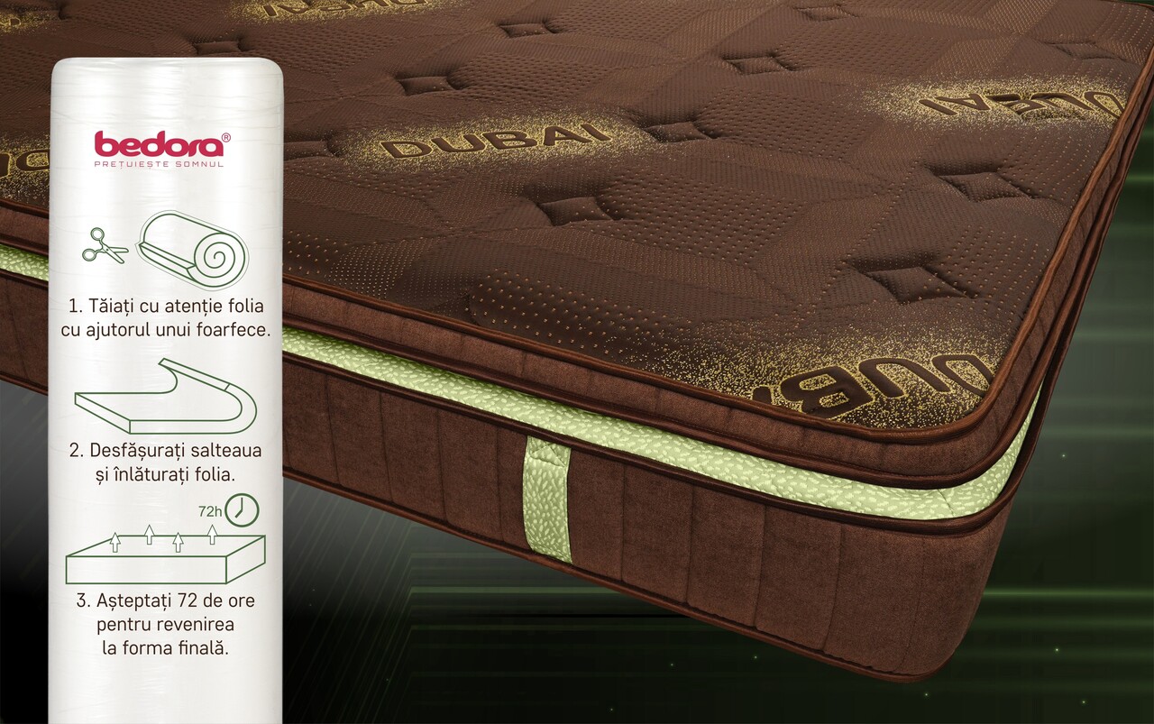 Salteaua Dubai Chocolate Deluxe este realizată din materiale de cea mai bună calitate, concepute pentru a oferi un confort excepțional și un somn odihnitor.