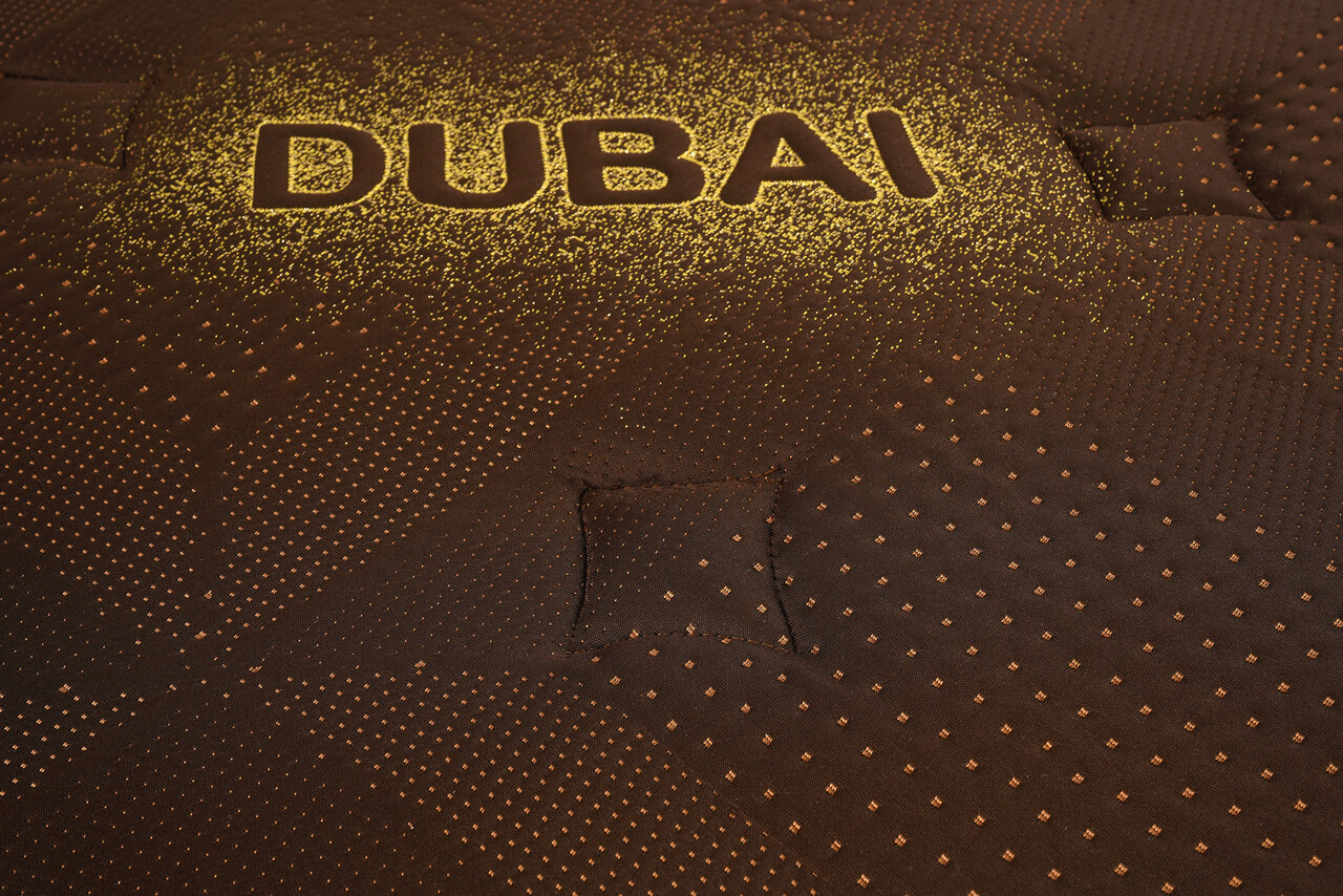 Salteaua Dubai Chocolate Deluxe Pocket este îmbrăcată într-o husă elegantă, de culoare maro, confecționată dintr-un material textil de înaltă calitate, plăcut la atingere și rezistent în timp. Un detaliu distinctiv îl reprezintă ușoara aromă de ciocolată, discretă și relaxantă, care adaugă o notă de rafinament și confort experienței de somn. Această husă nu este doar estetică, ci contribuie și la crearea unui mediu plăcut și primitor în dormitor.