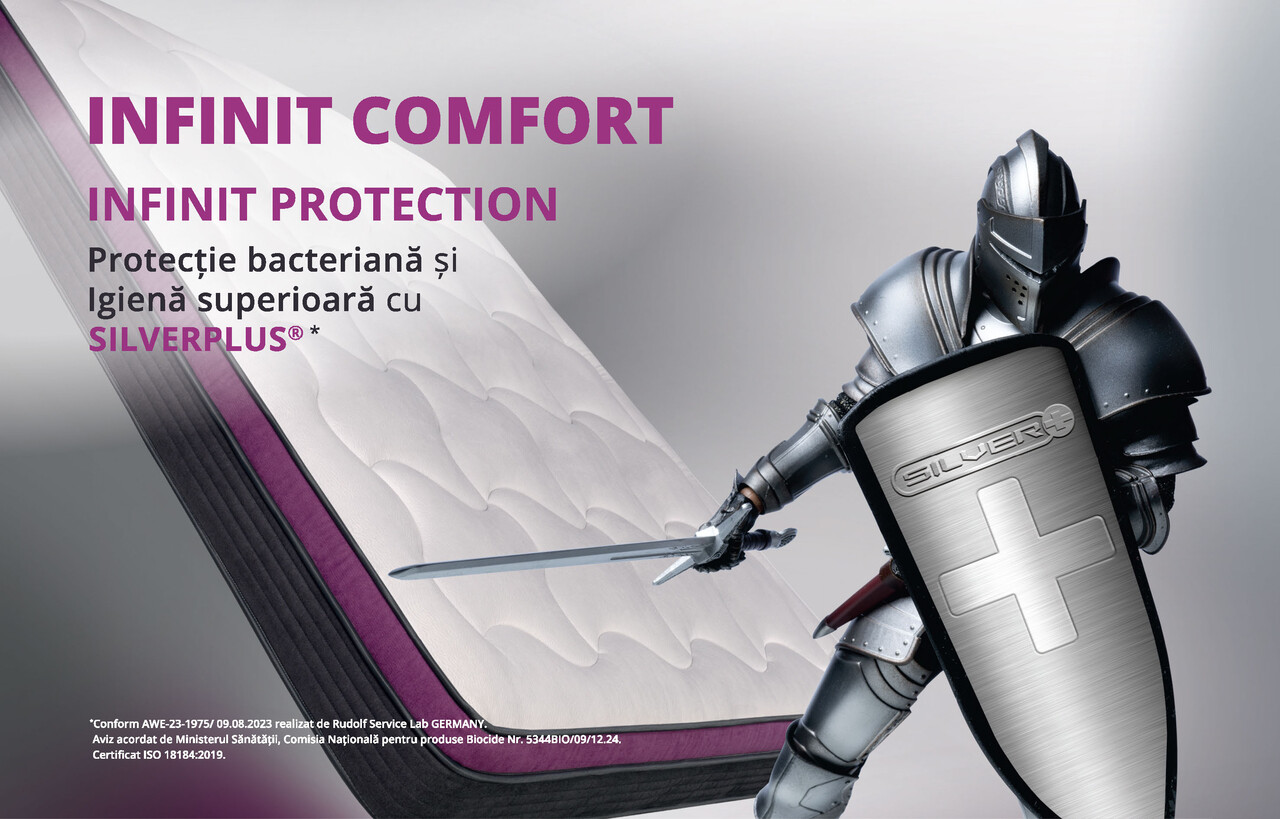 Împreună cu specialiști ortopezi, am dezvoltat salteaua Infinit Confort utilizând materiale de cea mai bună calitate, pentru a susține o postură ortopedică corectă a corpului în timpul somnului.