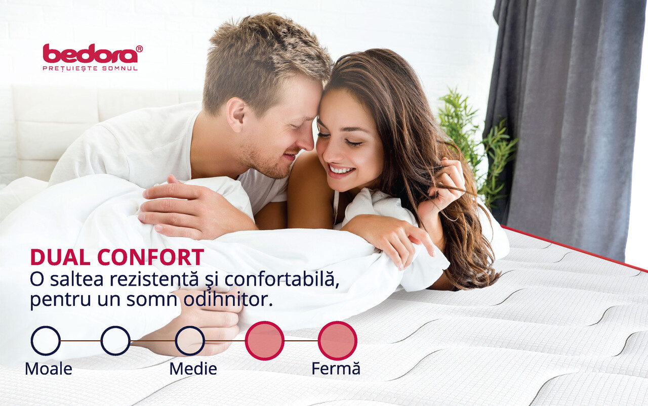 Tehnologia avansată a celor două straturi de spumă de înaltă calitate garantează un somn odihnitor, fără transmiterea mișcărilor partenerului. Husa saltelei asigură o ventilație adecvată, menținând un mediu uscat și liber de acarieni pe parcursul nopții.