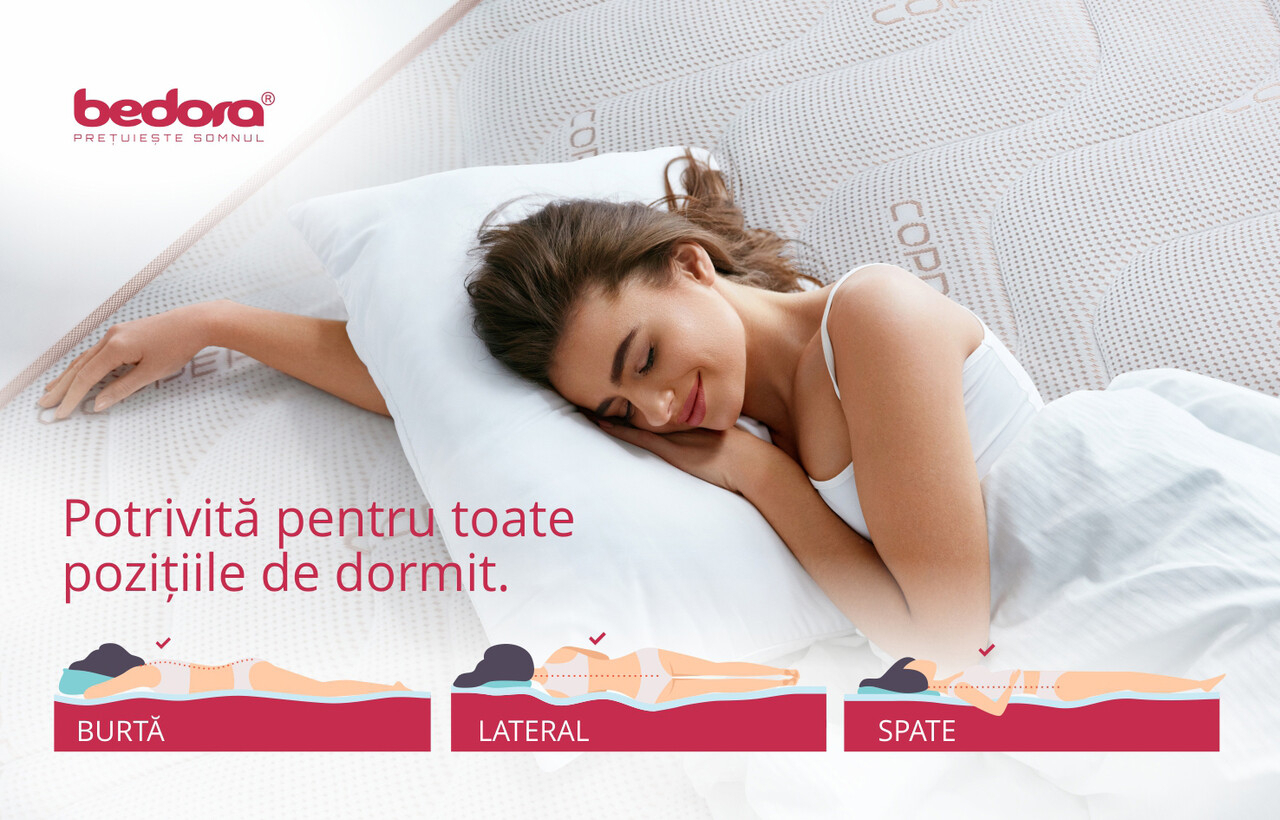 - Indicata pentru toate pozitiile de dormit: pe spate, pe lateral si pe stomac