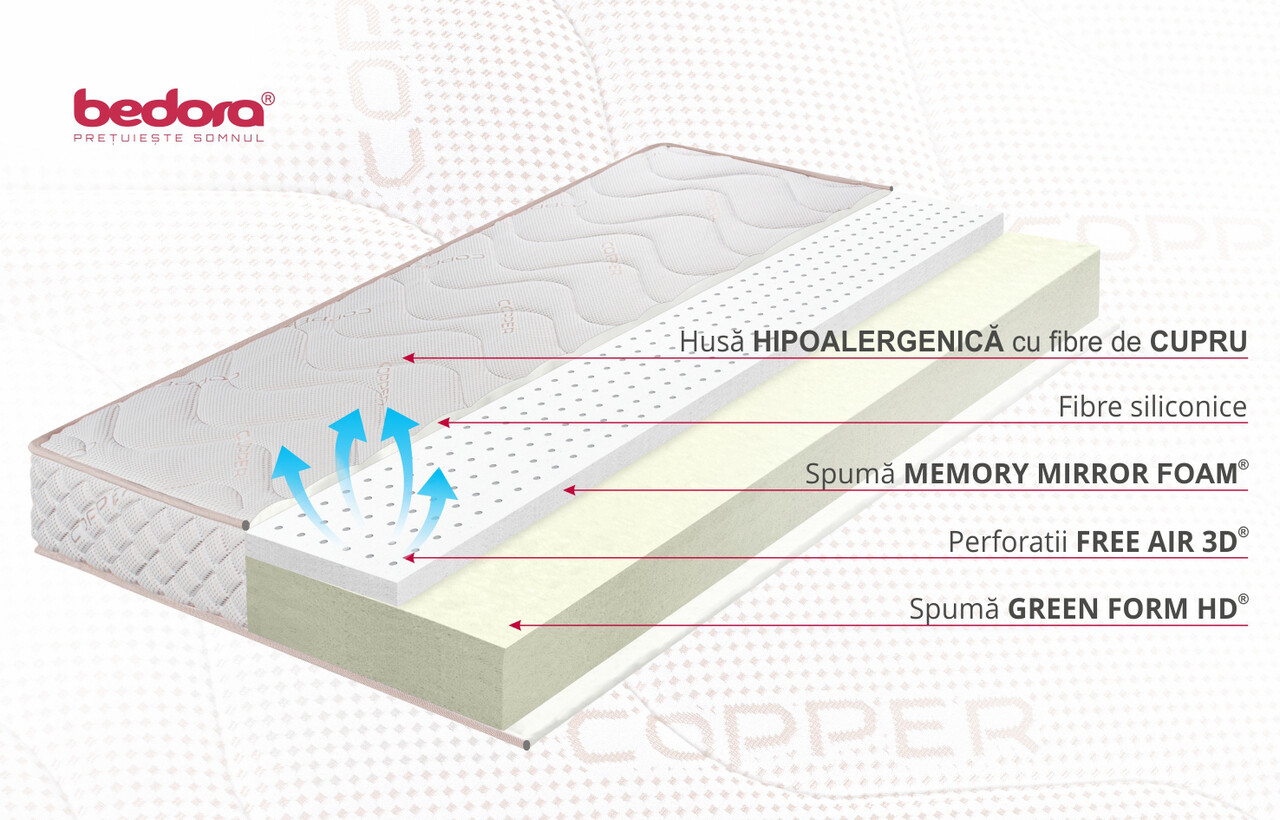 Saltea ortopedica, Copper Memory Free Air, 160x190 cm, Husa hipoalergenica, Dual Confort