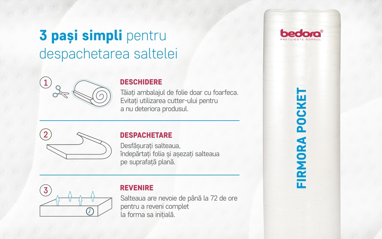 Pentru produsele infasurate in rulou, recomandam deschiderea/derularea imediat dupa achizitionare.