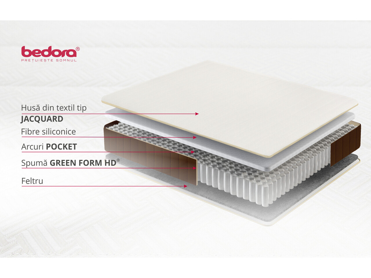 Cele doua elemente esentiale pe care le ofera — suportul și confortul — sunt fundamentale pentru mentinerea unei pozitii corecte a corpului in timpul somnului. Suportul asigura o aliniere optima a coloanei vertebrale, reducand presiunea asupra articulatiilor, in timp ce confortul oferit de stratul moale si placut contribuie la un somn relaxant, fara disconfort. Aceste caracteristici ajuta la prevenirea durerilor de spate si imbunatatesc calitatea somnului.