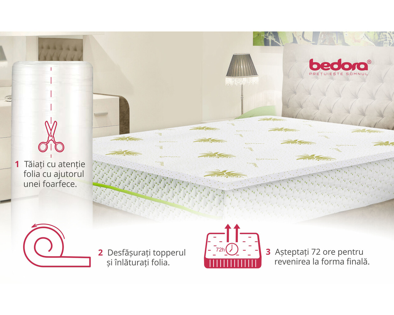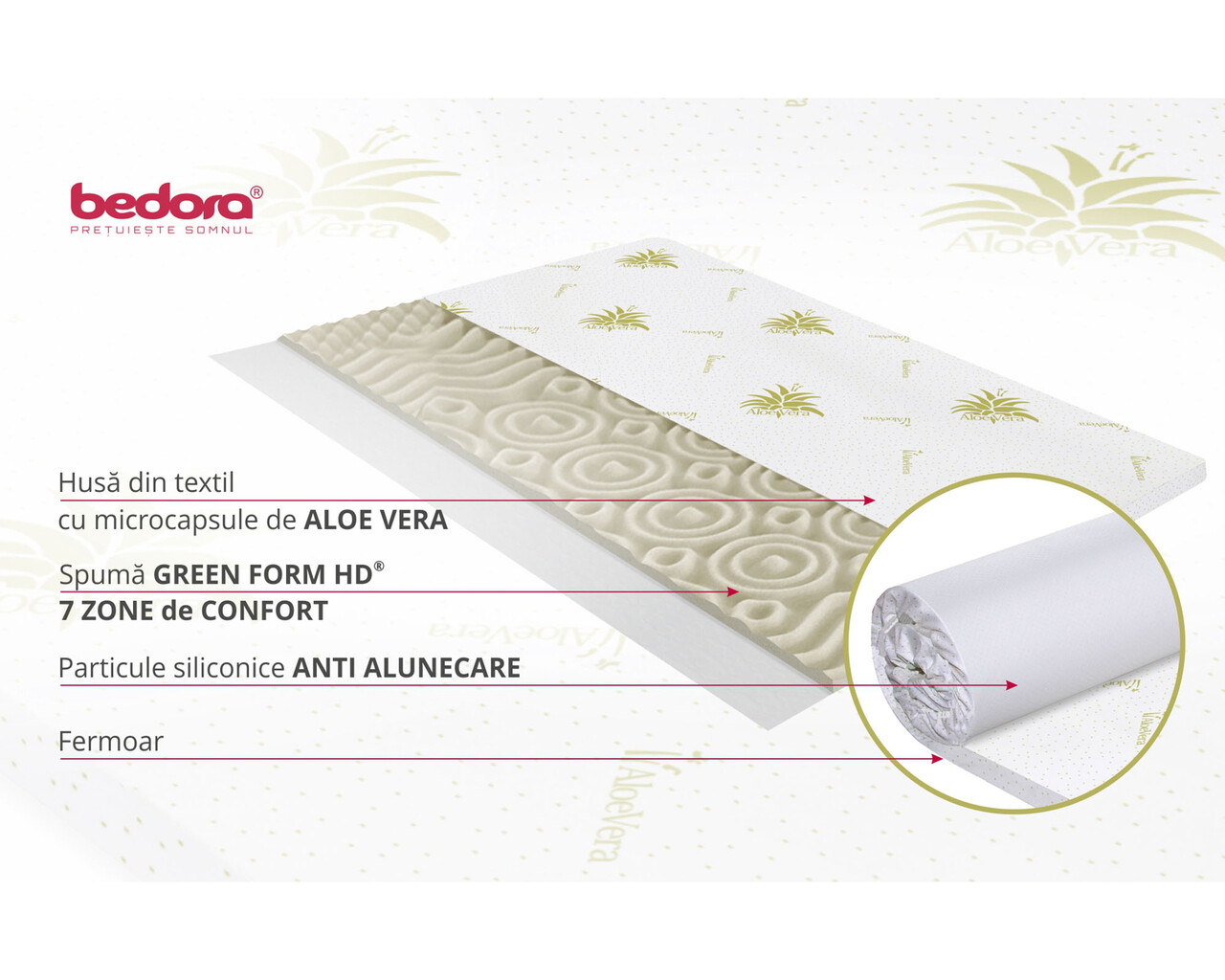 Topperul pentru saltea Aloe Vera 7 Zone de Confort este un accesoriu ideal pentru imbunatatirea confortului si calitatii somnului.
