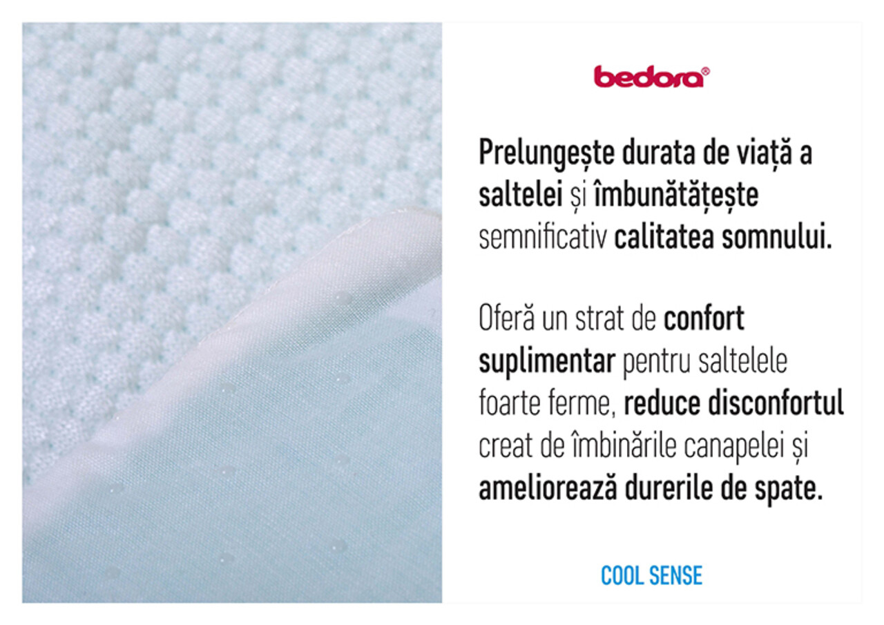 Topperul pentru saltea Cool Sense spuma Mirror Foam® Memory cu particule reci Arctic Gel® este un accesoriu ideal pentru imbunatatirea confortului si calitatii somnului.