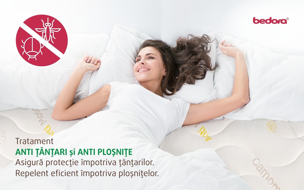 Husa certificata OEKO-TEX, ofera o combinatie excelenta de confort si protectie. Datorita tratamentului Anti-Tantari si ploșnițe, aceasta husa protejeaza eficient impotriva insectelor, asigurand un mediu de somn mai sigur. Stratul matlasat de fibre siliconice pe partea superioara imbunatateste confortul, iar aerisirea sporita contribuie la un somn mai odihnitor si sanatos. Certificarea OEKO-TEX garanteaza ca materialele folosite sunt sigure pentru sanatate, fara substante daunatoare.