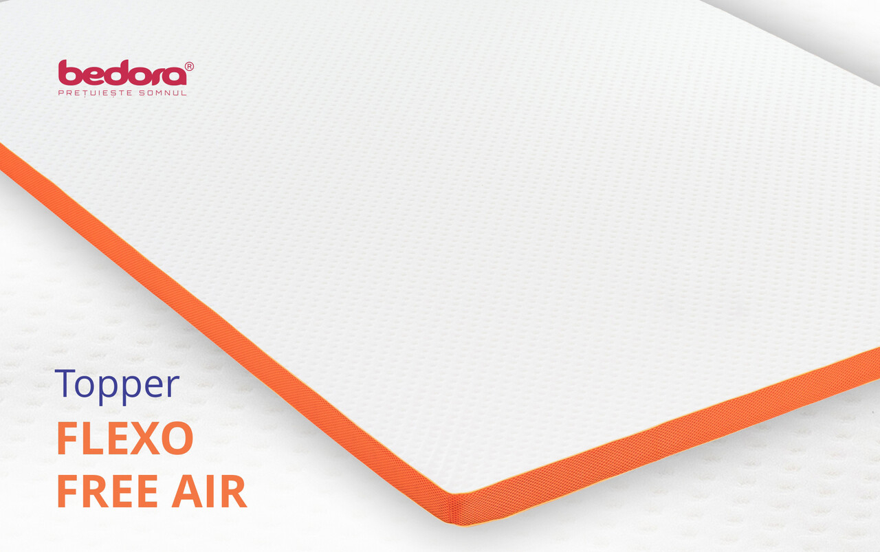 Topper-ul Flexo Free Air este realizat din spumă poliuretanică Green Form HD® cu celulație deschisă, care se adaptează perfect formei corpului, reducând punctele de presiune în timpul somnului. Acesta contribuie la relaxarea mușchilor și la o circulație sanguină optimă.