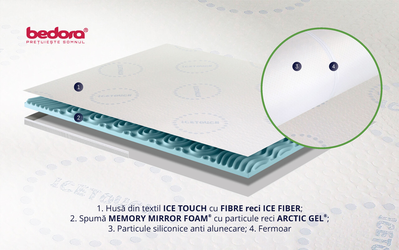Topperul pentru saltea Ice Touch 7 Zone de Confort cu memory Arctic Gel® reprezintă un accesoriu de excepție, conceput pentru a spori confortul și a optimiza calitatea somnului.