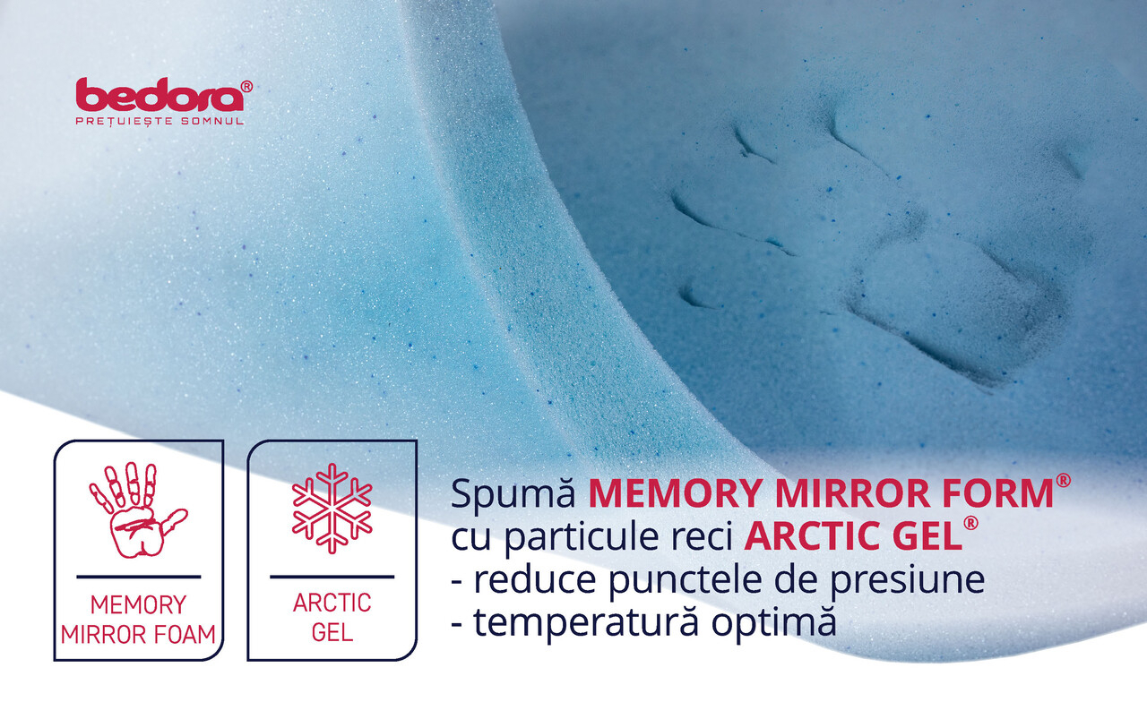 - 4 cm spuma Green Therm Memory cu particule reci Arctic Gel® profilat 7 zone de confort